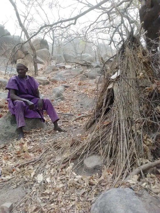 Baba Samaila Hambawa Handa and the Oracle (the hut) and the three holes on the rock is for placing the lungs of a sacrificed animal